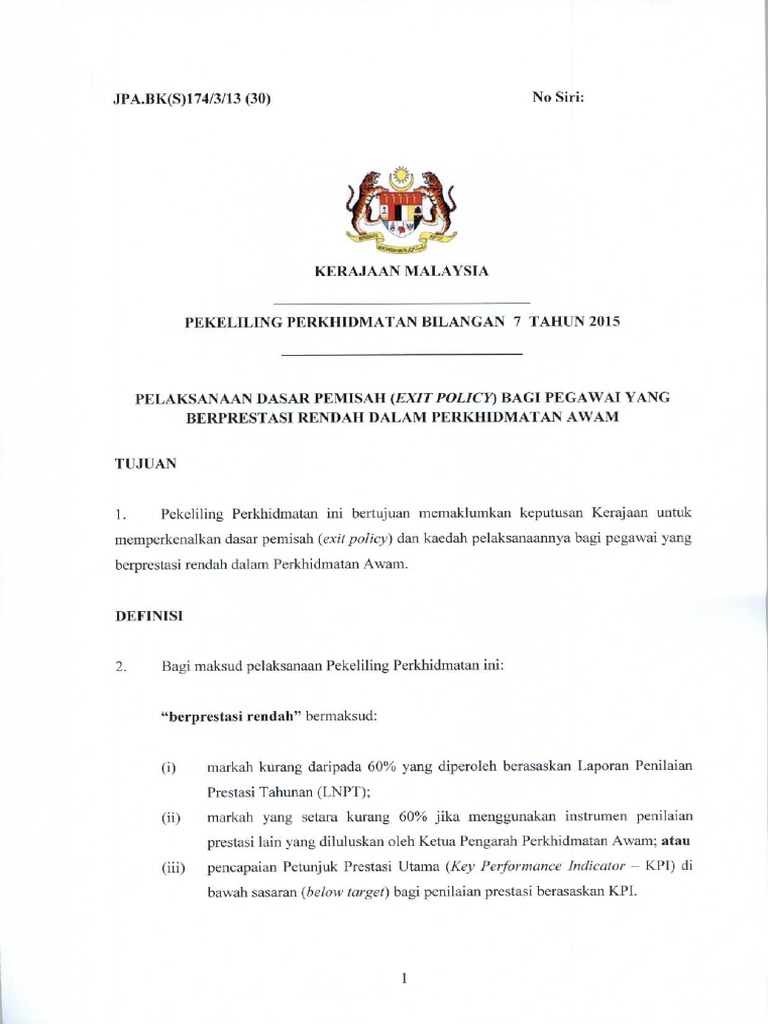 KERAJAAN MALAYSIA SURAT PEKELILING PERKHIDMATAN BILANGAN 3 TAHUN 2009 BORANG LAPORAN PENILAIAN PRESTASI KHAS. Dalam borang sasaran kerja dan pencapaian sasaran kerja untuk tempoh penilaian. Peraturan p u a 1 2012 per.